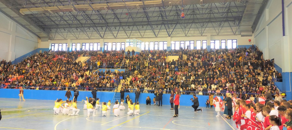 Cumhuriyet Meydanı’nda yapılması beklenen bayram programı hava muhalefeti nedeniyle spor salonunda saat 11.00’de başladı. Gazi Mustafa Kemal ATATÜRK, ebediyete irtihal eden gaziler ve tüm şehitlerimizin manevi huzurunda 1 dakikalık saygı duruşunda bulunuldu akabinde İstiklal Marşı seslendirildi. Ardından Kaymakam Yakup PAPAKER ve Belediye Başkanı Hakan GÖK halkın ve öğrencilerin bayramını kutladı. Günün anlam ve önemini belirten konuşmayı İlçe Milli Eğitim Müdürü Melih Veysel SAYAR yaptıktan sonra öğrenciler şiirler okudu. Okulların alan gösterilerinden sonra yarışmalarda derece alan öğrencilere ödülleri verildikten sonra program sona erdi. /Murat Nedim Bozkurt