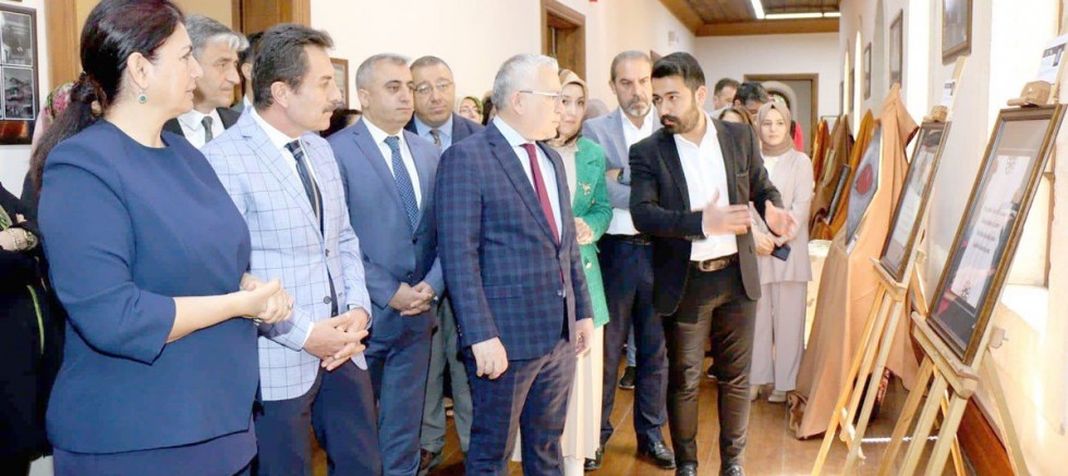Açılışın ardından sergiyi gezen Vali Şimşek ve Aslan, Sivas Olgunlaşma Enstitüsü Müdürü Aysel Şenlen'den eserler hakkında bilgi aldı.