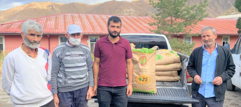 Divriği Tarım ve Orman Müdürü Hasan Hüseyin Özdemir, “İlçemizde 69 üreticiye 40 ton sertifikalı arpa ve buğday tohumu dağıtıldı. Projedeki amaç, üreticilerin sertifikalı ve kaliteli tohumluk kullanması sağlanarak üretimde verim ve kalitenin artırılmasıdır. Projemizden, öncelikli olarak işlenmeyen atıl arazileri üretime kazandıracak çiftçilerimiz, genç çiftçilerimiz, bayan çiftçilerimiz, şehit ve gazi yakınlarımız, ekonomik sebeplerle ekim yapamayacak çiftçilerimiz başta olmak üzere imkânlar ölçüsünde müracaat eden çiftçilerimiz faydalandırılmıştır.” dedi. /Murat Nedim Bozkurt