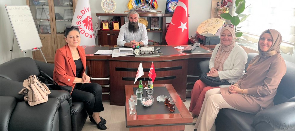 İlçemizde geçen sene kurulan Sınırlı Sorumlu Divriği Mahir Eller Kadın Girişimi Üretimi ve İşletme Kooperatifi Yönetim Kurulu üyeleri Münevver Yılmaz, Lütfiye Arslanburç ve Gülcan Özcan yine ilçemizde uzun yıllardır faaliyet gösteren Sınırlı Sorumlu Motorlu Taşıyıcılar Kooperatifi Başkanı Devrim Yıldırım'ı makamında ziyaret ettiler.