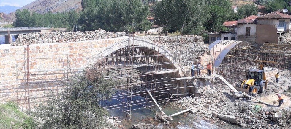 Divriği Kalesi’nin restorasyonunu üstlenen Zeydanlı firması tarafından yapılan köprü 2 kemerli olacak. Yaklaşık 40 metre uzunluğa sahip olacak köprünün yakın zamanda bitirilip yaya geçişine açılması bekleniyor. (Murat Nedim Bozkurt)