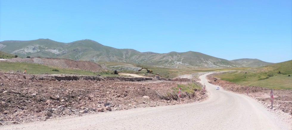 70 km.lik Divriği-Çetinkaya karayolu yapımını bitiren OKAR firmasının üstlendiği çalışmaların kış sezonundan önce tamamlanması bekleniyor. /Murat Nedim Bozkurt