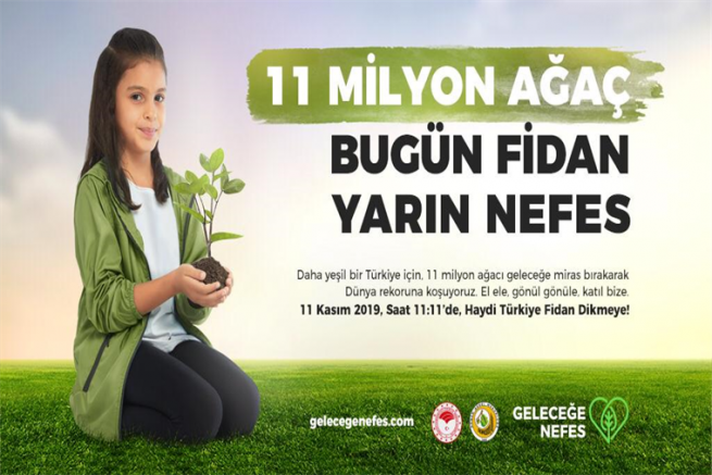 Öğrencilerden askeri birliklere, sivil toplum örgütlerinden kamu kurum ve kuruluşlarına, esnafından işçisine kısaca 7 den 77’ye toplumun bütün kesimlerinden katılacak vatandaşların katkıları ile 11 Kasım 2019 günü saat 11.11’de 81 ilimizde aynı anda 3 saatlik bir zaman dilimi içerisinde ülke genelinde 11 milyon adet fidan toprakla buluşacak.