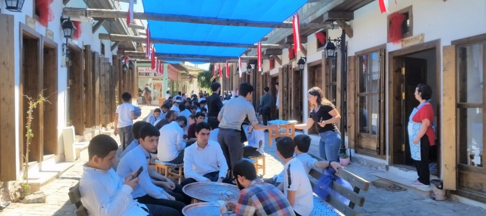 Geçtiğimiz hafta ilçemizi ziyaret eden Sivas Arifan medresesinde İslami ilimler ve hafızlık eğitimi alan yaklaşık 150 öğrenci Ulucami, Mühürdarzade konağı ve çarşı gezilerinden sonra Hüma Hatun Sokağı’nı da ziyaret ederek burada 12 kadının çalıştırdığı dükkanları incelediler. Sokakta bulunan Divriği Pilavcısında Divriği Pilavını da tadan konuklar memnuniyetlerini dile getirdiler.