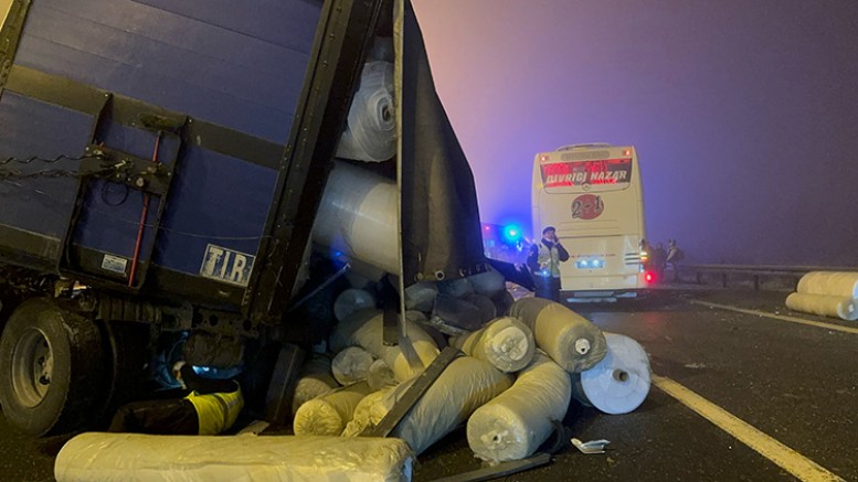 Divriği’den İstanbul seferini yapmak üzere yola çıkan yolcu otobüsü İstanbul Kuzey Marmara Otoyolu Çekmeköy mevkisinde tırla çarpıştı. Saat 04.00 sıralarında meydana gelen kazada otobüsün şoförü Gültekin Akçan’la birlikte 18 kişi yaralandı.