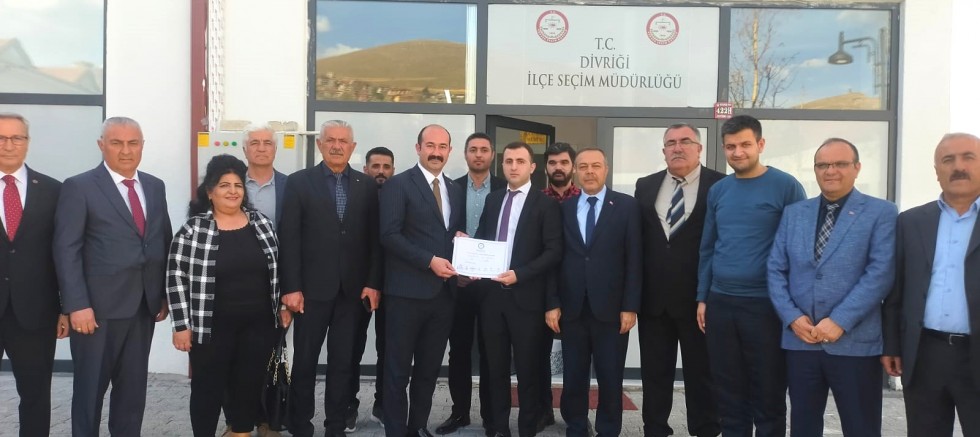 Divriği Belediye Başkanlığı seçimini kazanan Av. Cihan Deniz Akbaş ile İl Genel Meclisi üyeleri Ali Ekber Gündüz, Yalçın Akkaya, Belediye Meclisi’nin CHP’li üyeleri Hüsamettin Kırkayak, Adalet İnce, Ezgi Kocaoğlu, Pehlül Öztürk, Cemal Bozkurt, Murat Şahbudak ve Muharrem Çarpaz 3 Nisan Çarşamba günü İlçe Seçim Kurulu’nda mazbatalarını aldılar.