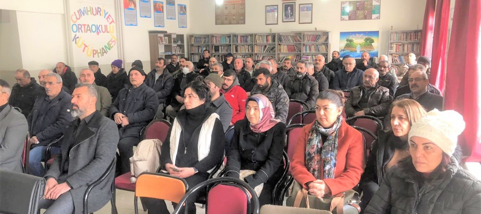 Sadık Özgür Ortaokulu toplantı salonunda yapılan toplantıda muhtarlardan köy ve mahallelerindeki binaların durumunun tespit edilmesi, deprem sonrasında zarar gelip gelmediğinin kontrol edilerek bildirilmesi istendi.