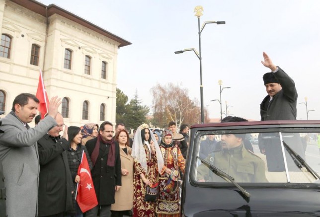 Konuşmaların ardından Vali Ayhan ve beraberindekiler Atatürk Kongre ve Etnografya Müzesi önünden Atatürk'ü canlandıran Sivas Belediyesi tiyatro eğitmeni Bülent Olgun'u yolcu etti. O döneme ait bir araca binen