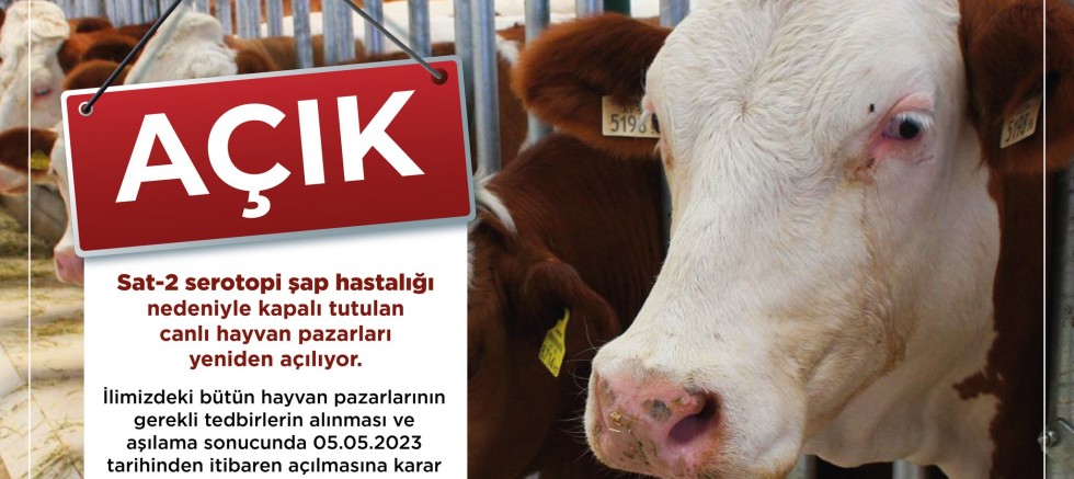 Yapılan açıklamada, “İller arası büyükbaş hayvan sevklerinde, sevk edilecek büyükbaş hayvanların SAT-2 serotipini içeren aşı ile aşılanmış ve aşılama tarihinden 21 gün geçmiş olması gerekmektedir. İller arası küçükbaş hayvan sevklerinde ise şap aşısı şartı aranmayacaktır. İl içi büyükbaş ve küçükbaş hayvan sevklerinde şap aşısı şartı aranmayacak olup, SAT-2 serotipi içeren aşı ile aşılanmamış olan hayvanların aşılanmasına aksatılmadan devam edilecektir. İl Müdürlüğümüz tarafından gerekli tedbirlerin alınması ve aşılama çalışmaları sonucunda; hastalık nedeniyle karantinası devam eden yerler dışında kısıtlanan hayvan hareketleri ve ilimizdeki bütün hayvan pazarlarının 05.05.2023 tarihinden itibaren açılmasına karar verilmiştir.” denildi./Ayfer Üngör