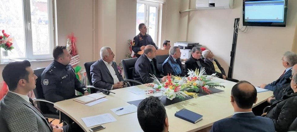 Toplantıya; İlçe Milli Eğitim Müdürü Melih Veysel Sayar, İlçe emniyet müdürlüğü ve jandarma komutanlığı yetkilileri, Belediye görevlileri, ilgili kurum müdürleri, otobüs firmalarının yetkilileri ve diğer ilgililer katıldı.