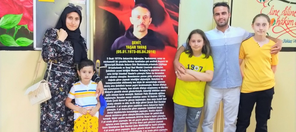 “Kahraman şehidimizin oğulları Miraç, Siraç ve Yusuf ile başı dik, gururlu eşi Halime Yavaş Ankara’dan çok uzaklara, hem onların hem de hepimizin kahramanı olan şehidimizin isminin yaşatıldığı ilçemize ziyarette bulundular. Şehidimiz Yaşar Yavaş’ın isminin yaşatıldığı sınıf kapısında eşi ve çocuklarıyla o anı paylaşmak bizim için büyük bir onurdu. Vatanımızın asıl sahiplerinin; şehidimizin isminin yaşatıldığı okulumuzu ziyaretlerinde bizlere eşlik eden İlçe Milli Eğitim Müdürü Melih Veysel Sayar ve şube müdürü Bilgin Çakmak’a teşekkür ederiz.”