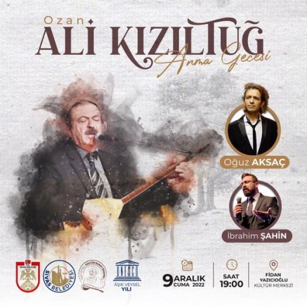 Sivas Belediyesi; sazıyla, sözüyle gönüllerde taht kuran Ali Kızıltuğ için anma programı düzenledi. Cuma günü Fidan Yazıcıoğlu Kültür Merkezi’nde saat 19.00’da başlayan programda ünlü sanatçı Oğuz Aksaç ile İbrahim Şahin sahne aldı.