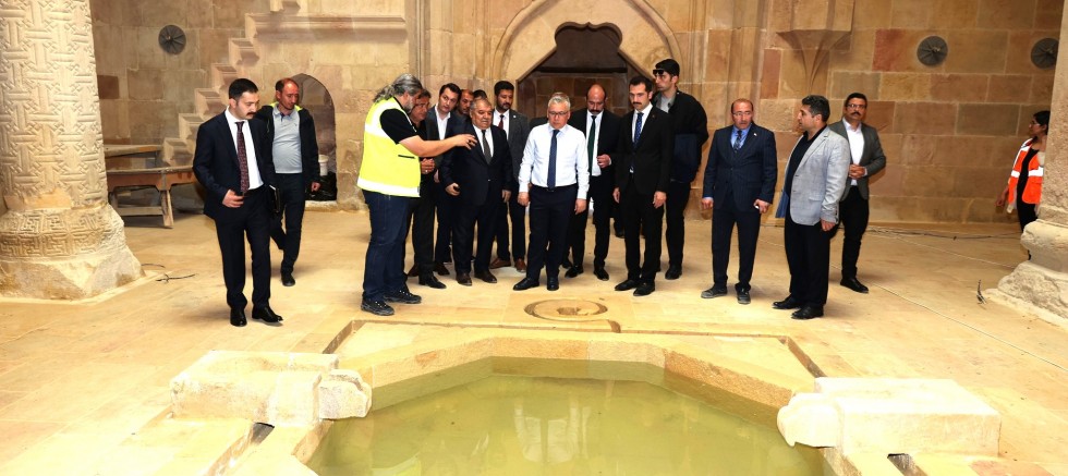 Restorasyonu son aşamaya gelen, çevre düzenleme çalışmaları da devam eden Ulucami ve Darüşşifa’da ki son durum hakkında ilgililerden bilgi alan Vali Şimşek "Bu eşsiz eserin yeniden ayağa kaldırılmasında başta Sayın Cumhurbaşkanımız Recep Tayyip Erdoğan olmak üzere bakanlarımıza, milletvekillerimize, emeği geçen mühendisinden işçisine tüm çalışanlara ve ilgili kurumlarımıza teşekkür ediyorum." Dedi. /Murat Nedim Bozkurt